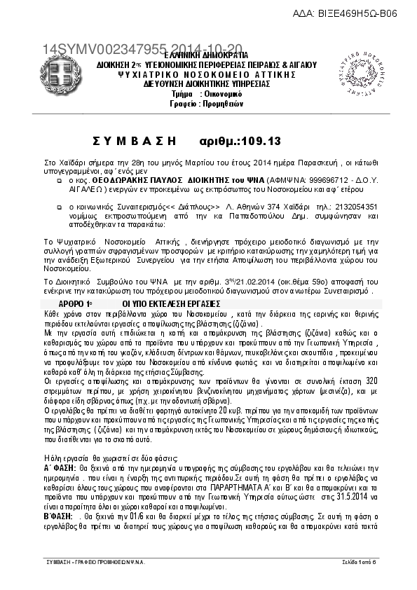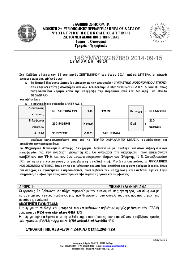 9. 11.14 ΣΥΜΒΑΣΗ_ΕΝΟΡΑΣΙΣ ΑΕ_ΠΡΟΜΗΘΕΙΑ ΥΓΕΙΟΝΟΜΙΚΟΥ ΥΛΙΚΟΥ ΓΙΑ ΕΝΑ ΕΤΟΣ