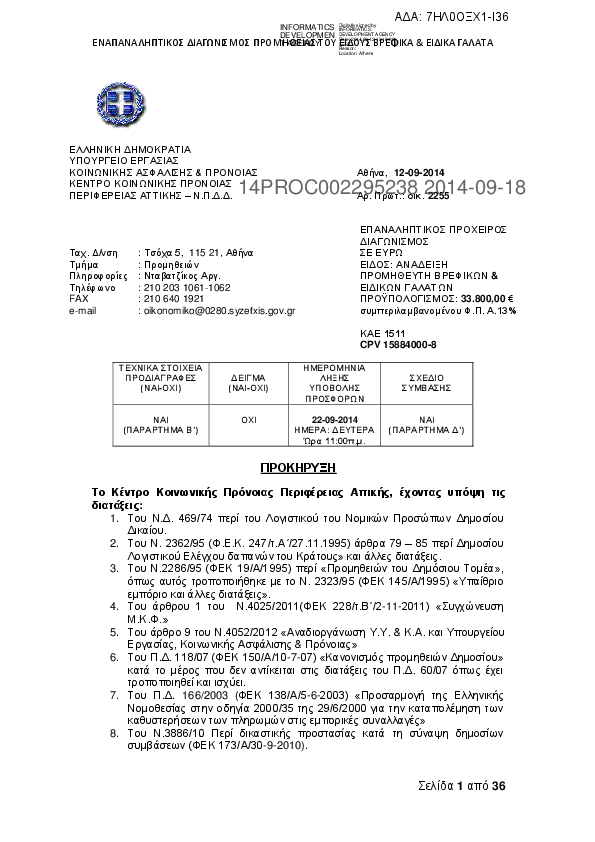 Αναζήτηση σε προκηρύξεις και συμβάσεις για: