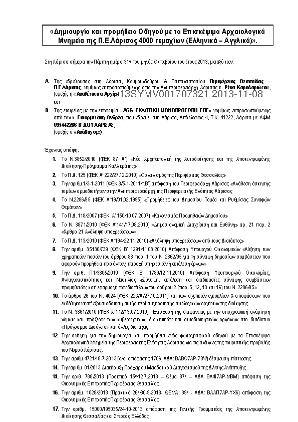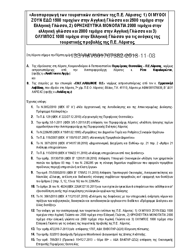 9. Προκήρυξη πρόχειρου διαγωνισμού για την αναπαραγωγή τουριστικών εντύπων της Π.Ε.Λάρισας