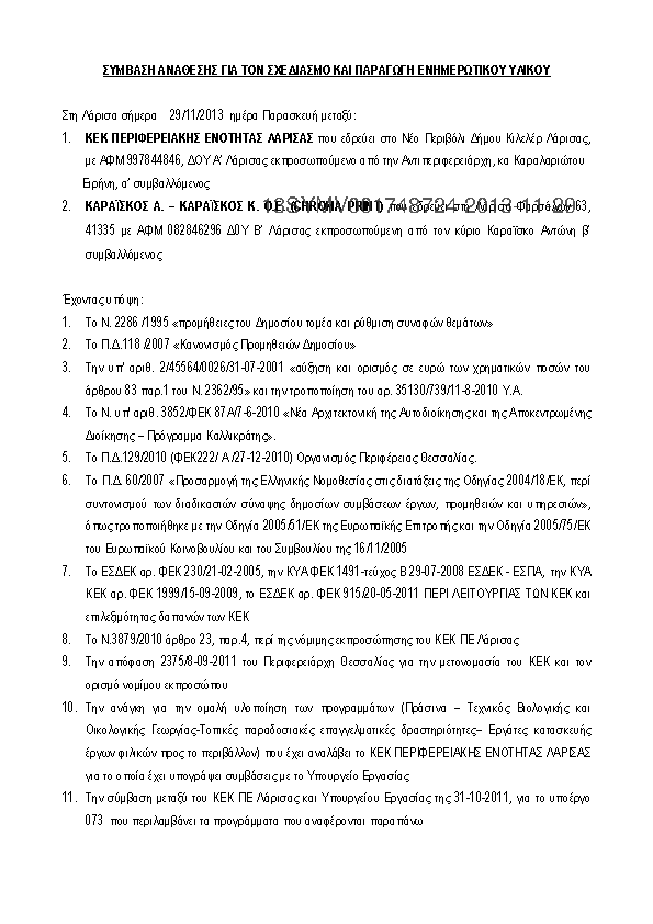 6. ΣΥΜΒΑΣΗ ΑΝΑΘΕΣΗΣ ΓΙΑ ΤΟΝ ΣΧΕΔΙΑΣΜΟ ΚΑΙ ΠΑΡΑΓΩΓΗ ΕΝΗΜΕΡΩΤΙΚΟΥ ΥΛΙΚΟΥ