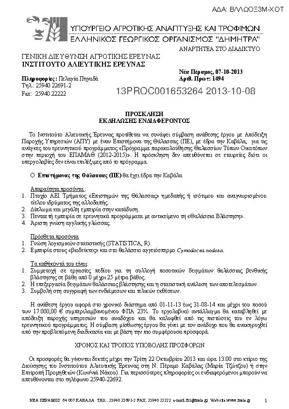 1. ΠΡΟΣΚΛΗΣΗ ΕΚΔΗΛΩΣΗΣ ΕΝΔΙΑΦΕΡΟΝΤΟΣ