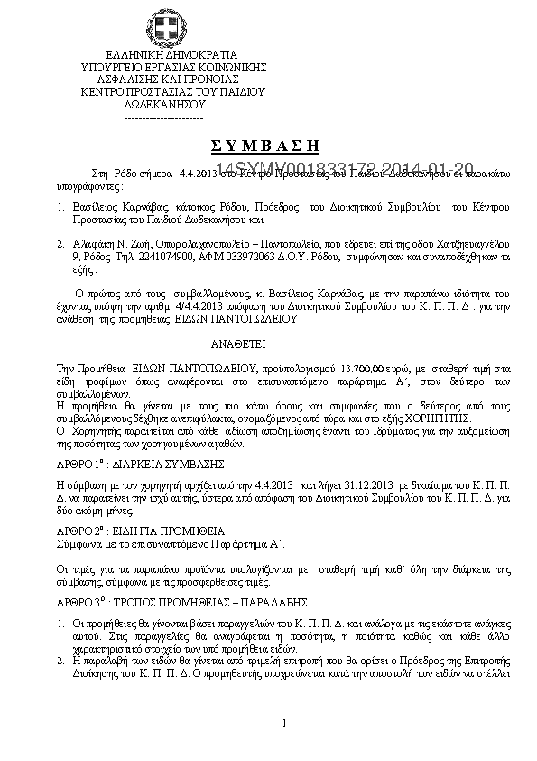 1. ΠΡΟΜΗΘΕΙΑ ΤΡΟΦΙΜΩΝ ΚΑΙ ΛΟΙΠΩΝ ΑΝΑΛΩΣΙΜΩΝ ΓΙΑ ΤΟ ΔΗΜΟ ΚΕΡΚΥΡΑΣ ΚΑΙ ΤΑ ΝΟΜΙΚΑ ΤΟΥ ΠΡΟΣΩΠΑ ΕΤΟΥΣ 2013