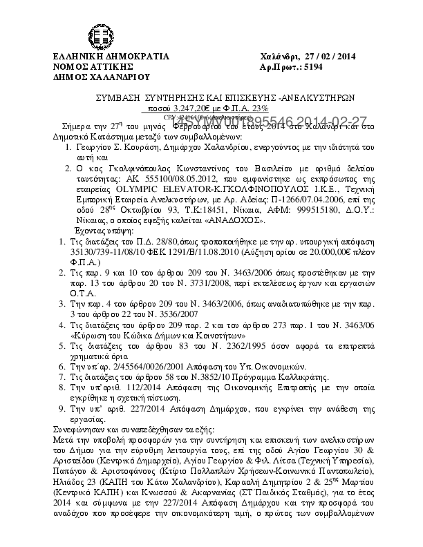 3. ΣΥΝΤΗΡΗΣΗ ΑΝΕΛΚΥΣΤΗΡΩΝ ΤΩΝ ΚΤΙΡΙΩΝ ΤΟΥ ΔΗΜΟΥ ΧΑΛΑΝΔΡΙΟΥ