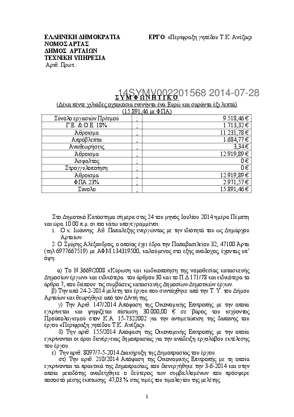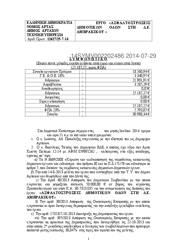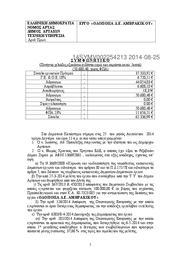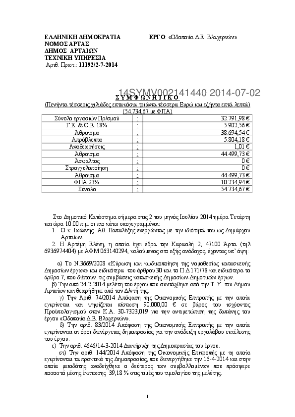 2. ΣΥΜΒΑΣΗ ΕΡΓΟΥ: " ΟΔΟΠΟΙΪΑ Δ.Ε ΒΛΑΧΕΡΝΩΝ"
