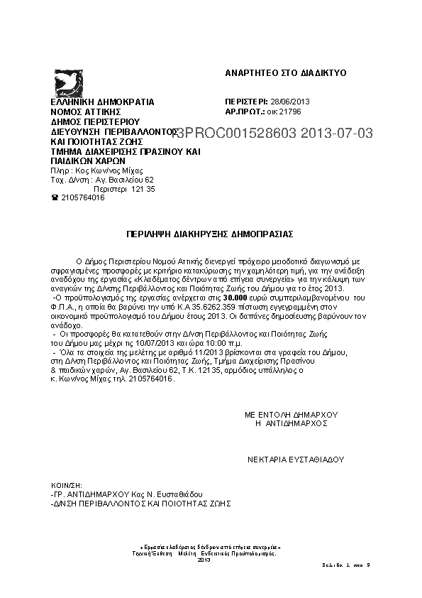 1. ΔΙΑΚΗΡΥΞΗ ΔΗΜΟΠΡΑΣΙΑΣ ΓΙΑ ΤΗΝ ΕΡΓΑΣΙΑ ΚΛΑΔΕΜΑΤΟΣ