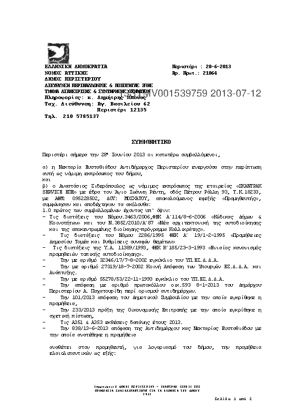 4. ΣΥΜΦΩΝΗΤΙΚΟ ΓΙΑ ΤΗΝ ΠΡΟΜΗΘΕΙΑ ΑΝΤΑΛΛΑΚΤΙΚΟΥ ΓΙΑ ΤΟ ΚΗΟ 5098