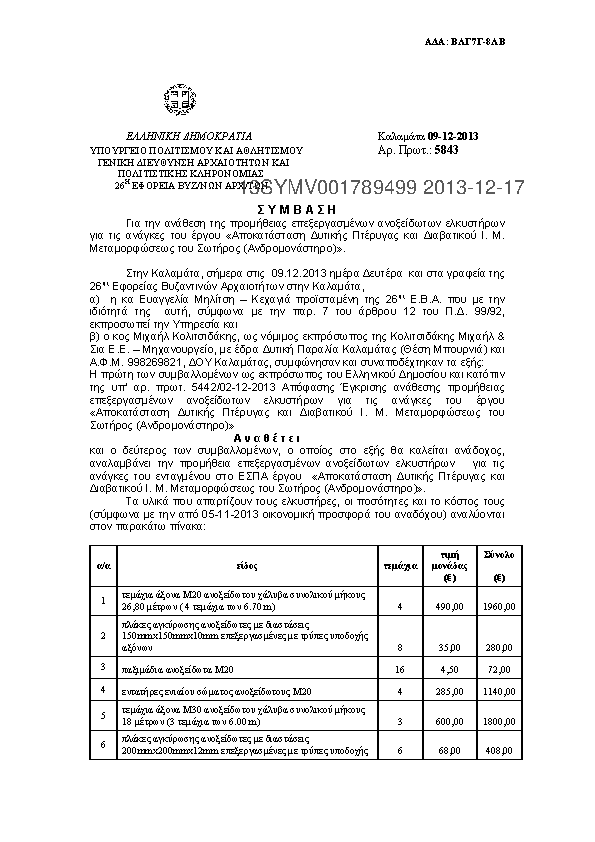 7. ΠΡΟΜΗΘΕΙΑ ΕΠΕΞΕΡΓΑΣΜΕΝΩΝ ΑΝΟΞΕΙΔΩΤΩΝ ΕΛΚΥΣΤΗΡΩΝ ΓΙΑ ΤΟ ΕΡΓΟ "ΑΠΟΚΑΤΑΣΤΑΣΗ ΔΥΤΙΚΗΣ ΠΤΕΡΥΓΑΣ ΚΑΙ ΔΙΑΒΑ