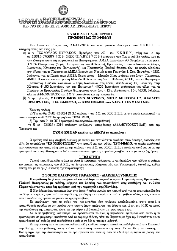 5. ΣΥΜΒΑΣΗ ΠΡΟΜΗΘΕΙΑΣ ΤΡΟΦΙΜΩΝ (ΑΗΔΟΝΗΣ ΠΑΝΑΓΙΩΤΗΣ) 2015