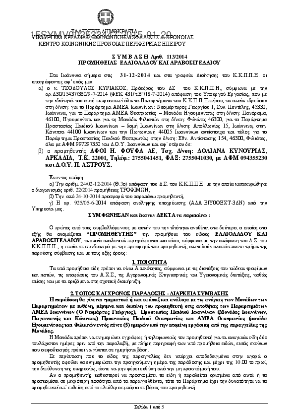 1. ΣΥΜΒΑΣΗ ΠΡΟΜΗΘΕΙΑΣ ΤΡΟΦΙΜΩΝ (ΑΦΟΙ ΦΟΥΦΑ) 2015