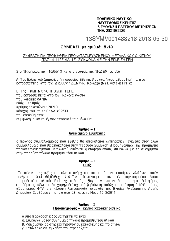 9. ΣΥΜΒΑΣΗ ΓΙΑ ΠΡΟΜΗΘΕΙΑ ΠΡΟΚΑΤΑΣΚΕΥΑΣΜΕΝΟΥ ΜΕΤΑΛΛΙΚΟΥ ΟΙΚΙΣΚΟΥ