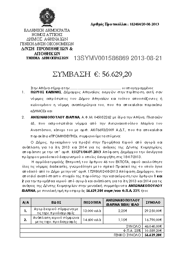 9. ΣΥΜΒΑΣΗ ΓΙΑ ΤΗΝ ΠΡΟΜΗΘΕΙΑ ΚΕΡΙΟΥ ΑΠΟ ΑΓΟΡΑ ΚΑΙ ΑΝΑΠΛΑΣΗ ΓΙΑ ΤΑ ΕΤΗ 2013 ΚΑΙ 2014