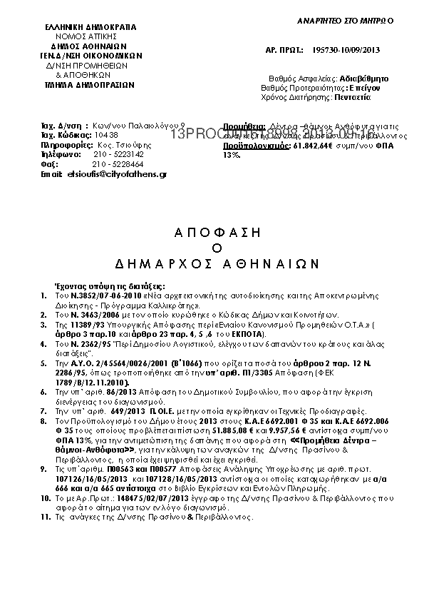 1. ΔΙΑΚΗΡΥΞΗ ΓΙΑ ΤΗΝ ΠΡΟΜΗΘΕΙΑ ΔΕΝΤΡΑ ΘΑΜΝΟΙ ΑΝΘΟΦΥΤΑ