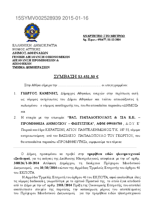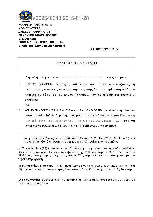 2. ΠΡΟΚΗΡΥΞΗ ΣΥΜΒΑΣΗΣ παροχής υπηρεσιών με τίτλο “Υπηρεσίες Ενεργειακού Συμβούλου” - Υποέργο 2 της Πράξης «ΕΝΕΡΓΕΙΑΚΗ ΑΝΑΒΑΘΜΙΣΗ ΤΩΝ ΣΥΓΚΡΟΤΗΜΑΤΩΝ 51ΟΥ ΔΗΜΟΤΙΚΟΥ ΣΧΟΛΕΙΟΥ ΚΑΙ 34ΟΥ ΝΗΠΙΑΓΩΓΕΙΟΥ ΤΗΣ 1ΗΣ ΔΗΜΟΤΙΚΗΣ ΚΟΙΝΟΤΗΤΑΣ, 93ΟΥ - 95ΟΥ ΔΗΜΟΤ...