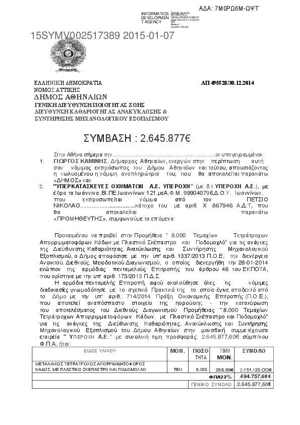 Αναζήτηση σε προκηρύξεις και συμβάσεις για: