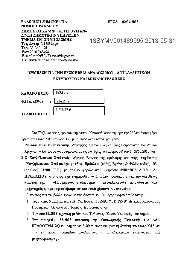 9. ΣΥΜΒΑΣΗ ΓΙΑ ΤΗΝ ΠΡΟΜΗΘΕΙΑ ΑΝΑΛΩΣΙΜΩΝ