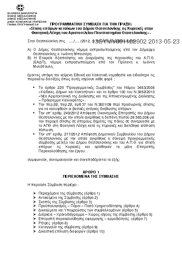 9. ΣΙΤΙΣΗ ΑΠΟΡΩΝ ΚΑΤΟΙΚΩΝ ΤΟΥ ΔΗΜΟΥ ΘΕΣΣΑΛΟΝΙΚΗΣ ΤΙΣ ΚΥΡΙΑΚΕΣ ΣΤΗΝ ΦΟΙΤΗΤΙΚΗ ΛΕΣΧΗ ΤΟΥ Α.Π.Θ.