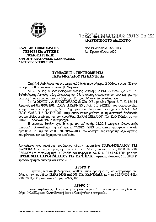 8. ΠΡΟΜΗΘΕΙΑ ΠΑΡΑΦΙΝΕΛΑΙΟΥ ΓΙΑ ΚΑΝΤΗΛΙΑ