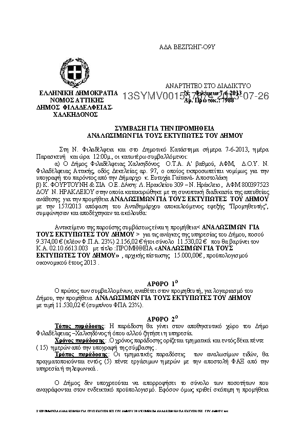 7. ΠΡΟΜΗΘΕΙΑ ΑΝΑΛΩΣΙΜΩΝ ΓΙΑ ΤΟΥΣ ΕΚΤΥΠΩΤΕΣ ΤΟΥ ΔΗΜΟΥ