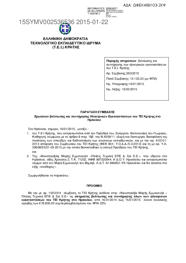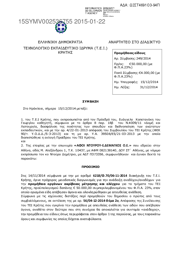 Αναζήτηση σε προκηρύξεις και συμβάσεις για:  Ποιότητας