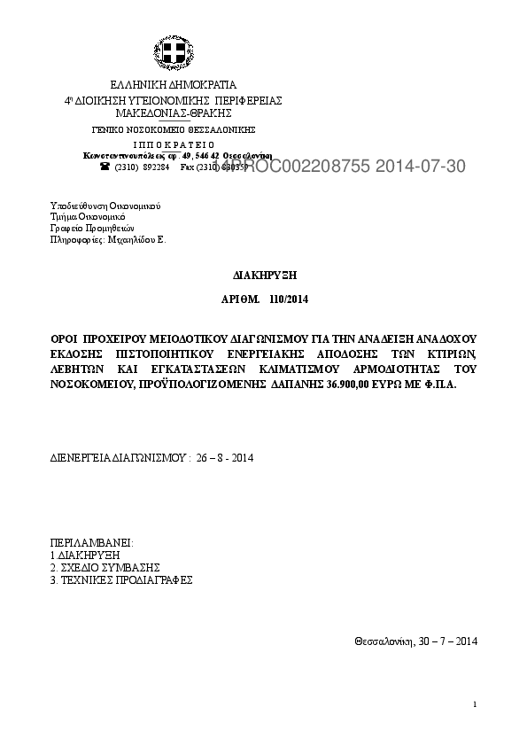 10. ΠΡΟΧΕΙΡΟΣ ΔΙΑΓΩΝΙΣΜΟΣ ΓΙΑ ΕΚΔΟΣΗ ΠΙΣΤΟΠΟΙΗΤΙΚΟΥ ΕΝΕΡΓΕΙΑΚΗΣ ΑΠΟΔΟΣΗΣ ΤΟΥ ΝΟΣΟΚΟΜΕΙΟΥ