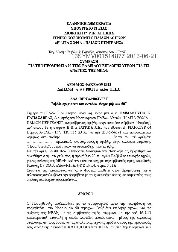 1. ΠΡΟΜΗΘΕΙΑ ΖΥΜΑΡΙΚΩΝ ΓΙΑ ΤΙΣ ΑΝΑΓΚΕΣ ΤΟΥ ΝΟΣΟΚΟΜΕΙΟΥ