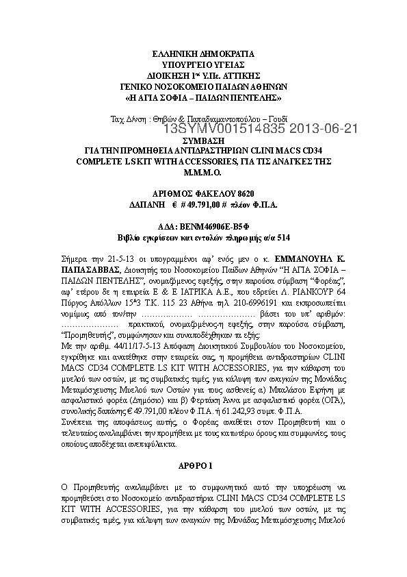 4. Προμήθεια αντιδραστηρίων CLINI MACS