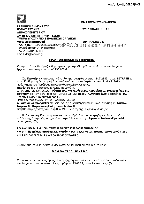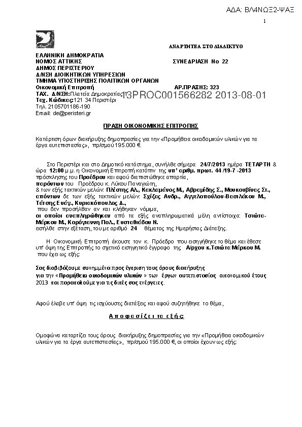 1. ΠΕΡΙΛΗΨΗ ΔΙΑΚΗΡΥΞΗΣ ΔΗΜΟΠΡΑΣΙΑΣ για το ΈΡΓΟ: «ΑΝΑΠΛΑΣΗ ΟΔΟΥ ΑΙΜΙΛΙΟΥ ΒΕΑΚΗ ΑΠΟ ΣΑΡΑΝΤΑΠΟΡΟΥ ΕΩΣ Π. ΤΣΑΛΔΑΡΗ ΚΑΙ ΟΔΩN ΡΟΥΣΒΕΛΤ ΚΑΙ ΚΑΡΑΘΕΟΔΩΡΗ ΑΠΟ ΑΙΜΙΛΙΟΥ ΒΕΑΚΗ ΕΩΣ ΕΘΝΙΚΗΣ ΑΝΤΙΣΤΑΣΕΩΣ ΣΤΟ ΠΕΡΙΣΤΕΡΙ»