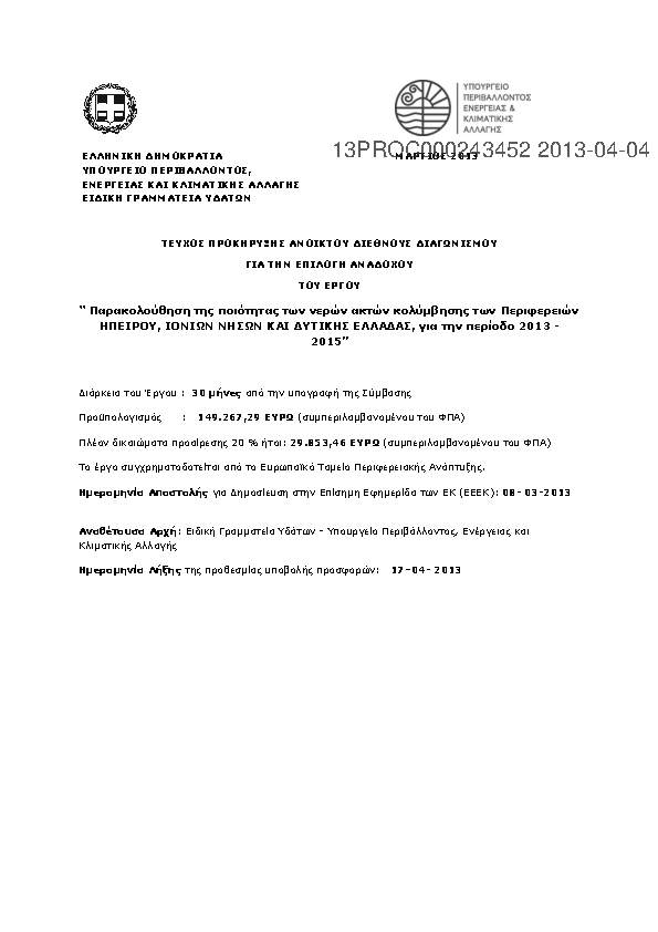 Αναζήτηση σε προκηρύξεις και συμβάσεις για:  Ποιότητας