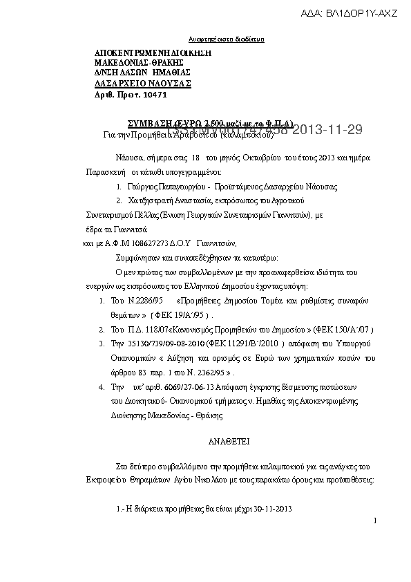 5. συμβαση ΠΟΜΗΘΕΙΑΣ ΚΑΥΣΙΜΩΝ ΘΕΡΜΑΝΣΗΣ ΓΙΑ ΤΙΣ ΑΝΑΓΚΕΣ ΤΟΥ ΔΑΣΑΡΧΕΙΟΥ ΚΙΛΚΙΣ