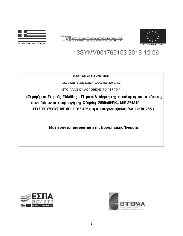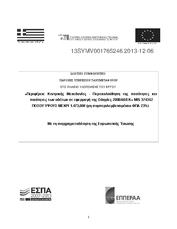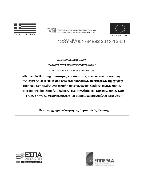 7. Παρακολούθηση της ποσότητας κ της ποιότητας των υδάτων περιφ. της χώρας MIS 349