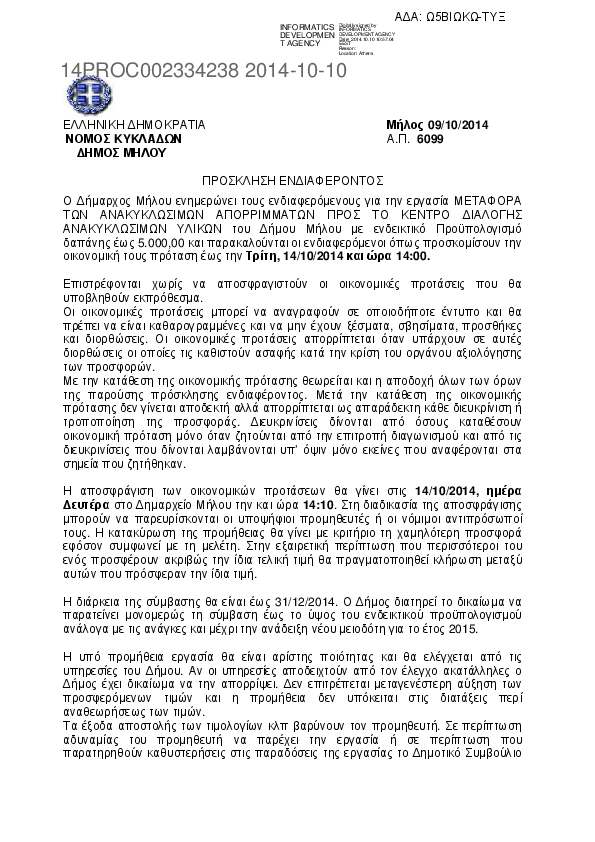 Αναζήτηση σε προκηρύξεις και συμβάσεις για: