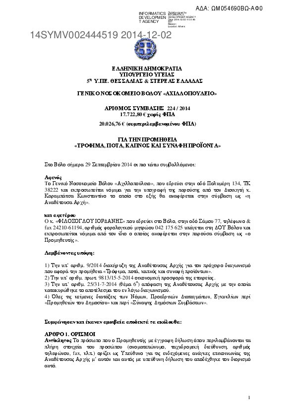 1. ΠΡΟΜΗΘΕΙΑ «ΤΡΟΦΙΜΑ, ΠΟΤΑ, ΚΑΠΝΟΣ ΚΑΙ ΣΥΝΑΦΗ ΠΡΟΪΟΝΤΑ»