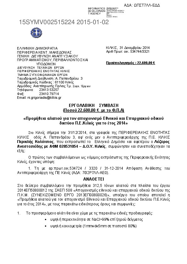 Αναζήτηση σε προκηρύξεις και συμβάσεις για: