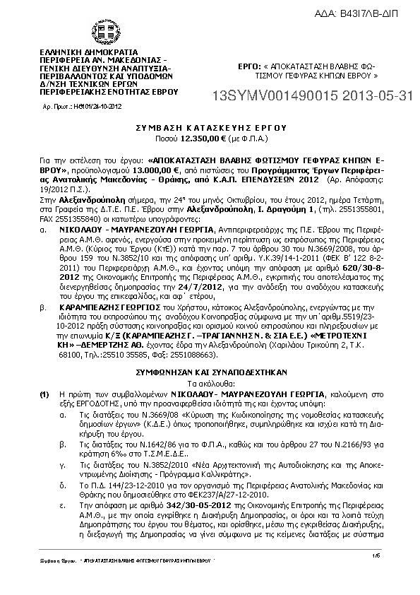 6. ΑΠΟΚΑΤΑΣΤΑΣΗ ΒΛΑΒΗΣ ΦΩΤΙΣΜΟΥ ΓΕΦΥΡΑΣ ΚΗΠΩΝ ΕΒΡΟΥ