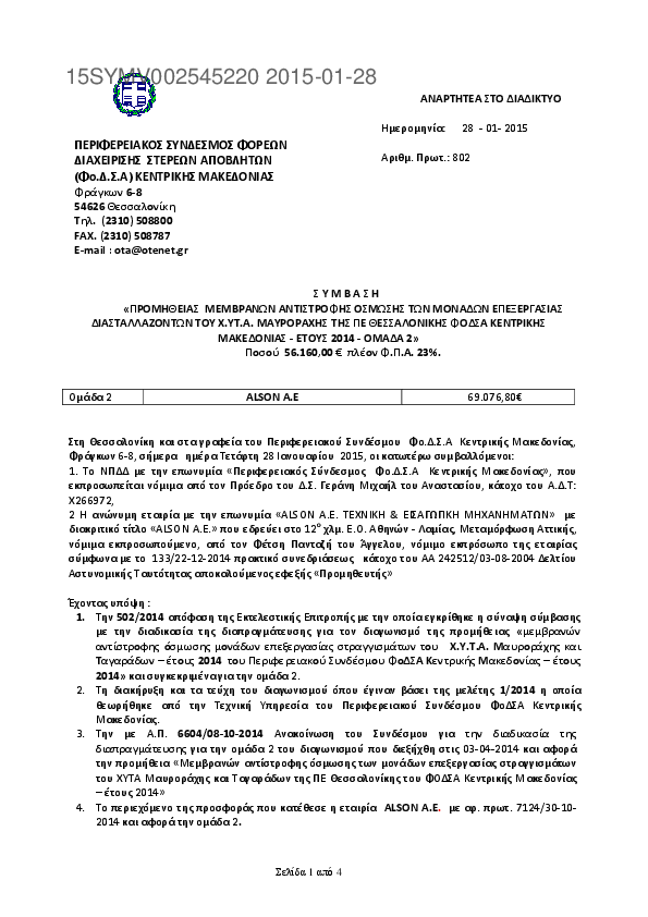 10. ΣΥΜΒΑΣΗ ΓΙΑ ΤΗΝ ΠΡΟΜΗΘΕΙΑ ΥΓΡΩΝ ΚΑΥΣΙΜΩΝ ΓΙΑ ΤΗΝ ΟΜΑΔΑ Α ΤΟΥ ΠΕΡΙΦΕΡΕΙΑΚΟΥ ΣΥΝΔΕΣΜΟΥ ΦΟΔΣΑ Κ.Μ.