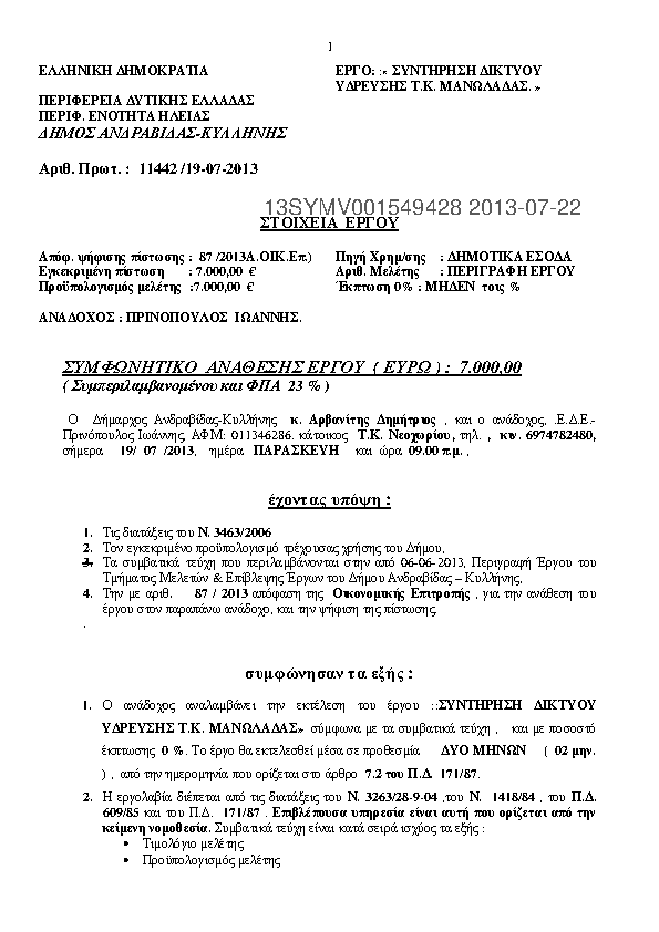1. ΣΥΝΤΗΡΗΣΗ ΔΙΚΤΥΟΥ ΥΔΡΕΥΣΗΣ Τ.Κ. ΜΑΝΩΛΑΔΑΣ