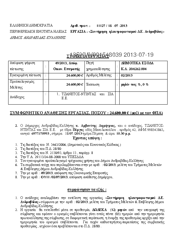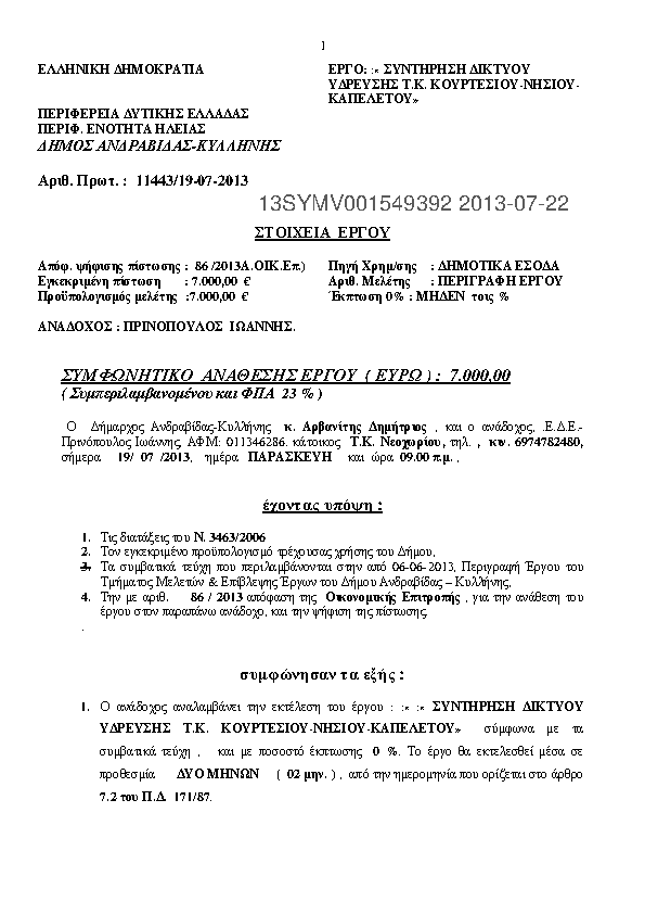 8. ΣΥΜΦΩΝΗΤΙΚΟ ΑΠΈΥΘΕΙΑΣ ΑΝΑΘΕΣΗΣ ΕΚΤΕΛΕΣΗΣ ΕΡΓΟΥ ΕΠΙΣΚΕΥΗ ΣΥΝΤΗΡΗΣΗ ΒΑΛΒΙΔΩΝ ΑΝΤΕΠΙΣΤΡΟΦΗΣ