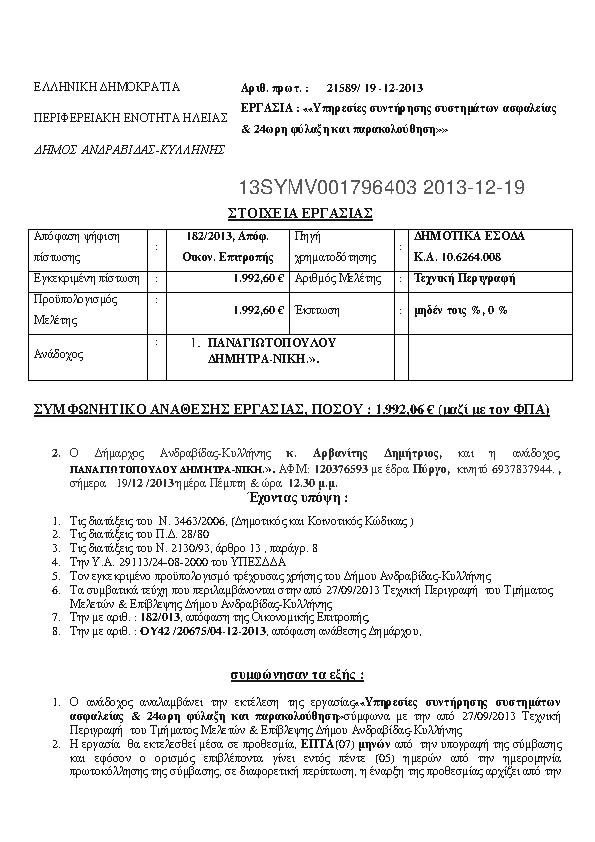 7. Υπηρεσίες συντήρησης συστημάτων ασφαλείας & 24ωρη φύλαξη και παρακολούθηση