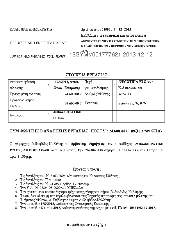 Αναζήτηση σε προκηρύξεις και συμβάσεις για: