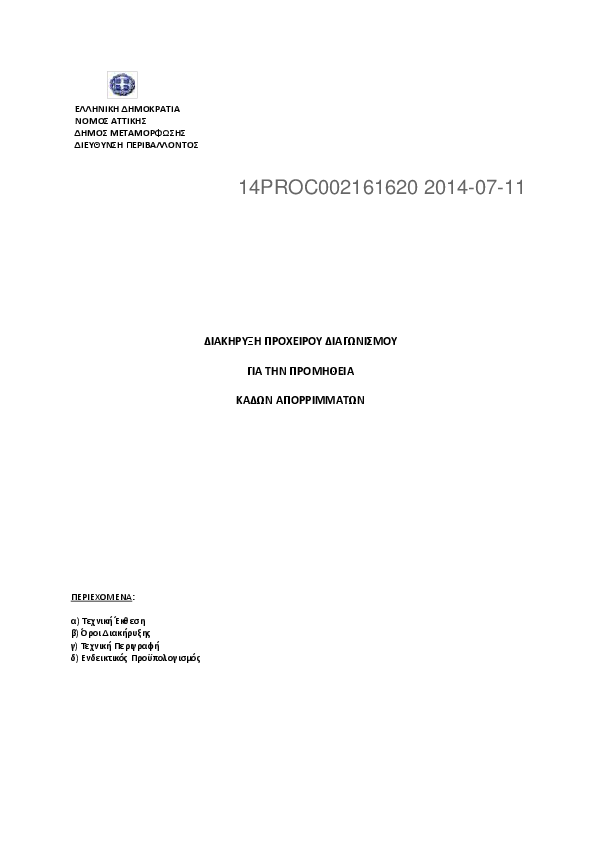10. ΔΙΑΚΗΡΥΞΗ ΠΡΟΧΕΙΡΟΥ ΔΙΑΓΩΝΙΣΜΟΥ ΓΙΑ ΤΗΝ ΠΡΟΜΗΘΕΙΑ ΚΑΔΩΝ ΑΠΟΡΡΙΜΜΑΤΩΝ
