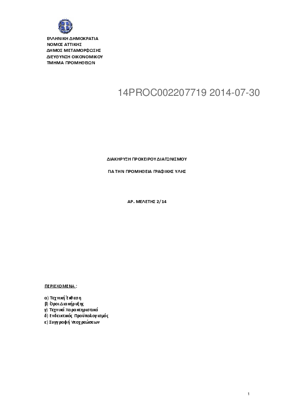 7. ΔΙΕΞΑΓΩΓΗ ΠΡΟΧΕΙΡΟΥ ΔΙΑΓΩΝΙΣΜΟΥ ΓΙΑ ΤΗΝ ΠΡΟΜΗΘΕΙΑ ΓΡΑΦΙΚΗΣ ΥΛΗΣ
