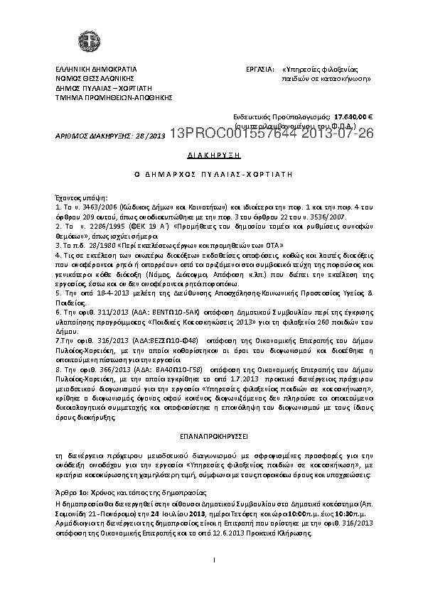 3. ΔΙΑΚΗΡΥΞΗ ΓΙΑ ΥΠΗΡΕΣΙΕΣ ΦΙΛΟΞΕΝΙΑΣ ΠΑΙΔΙΩΝ ΣΕ ΠΑΙΔΙΚΕΣ ΚΑΤΑΣΚΗΝΩΣΕΙΣ