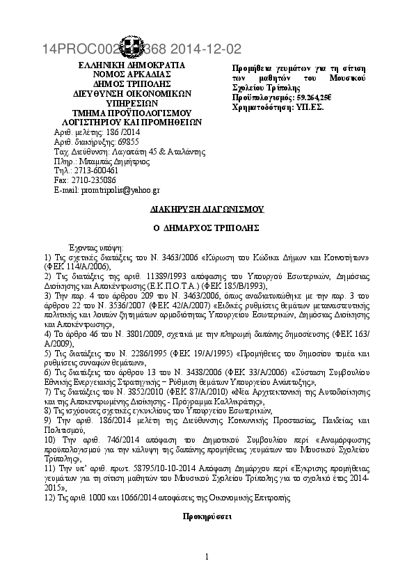 Αναζήτηση σε προκηρύξεις και συμβάσεις για:
