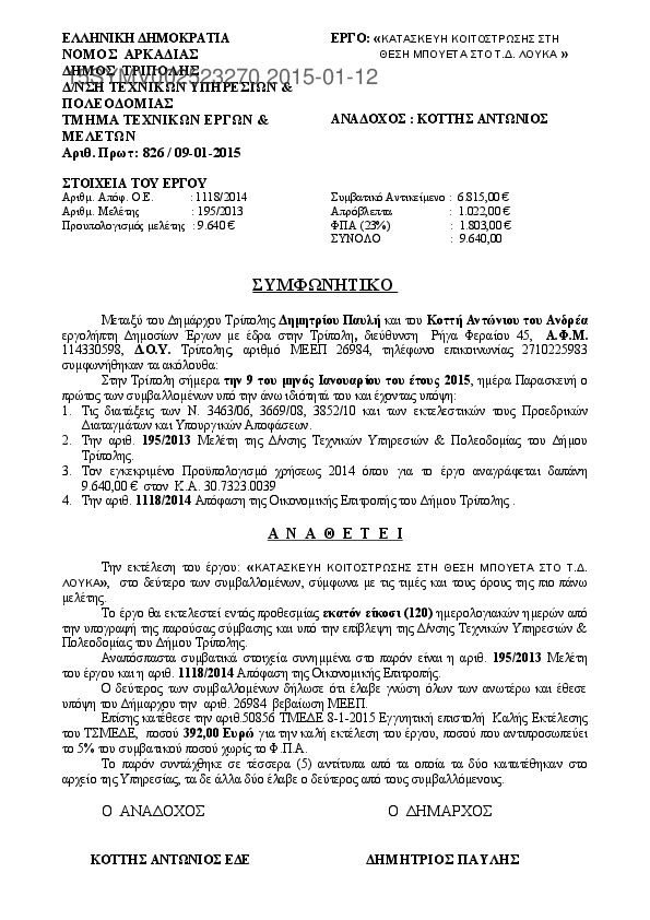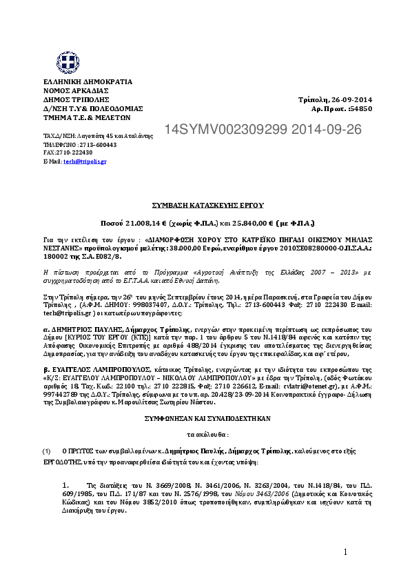9. Σύμβαση σύμβουλου ανάπτυξης ΕΣΠΑ αξιοποίησης φυσικού κάλλους όρους Μαινάλου για οργάνωση αειφόρου δι