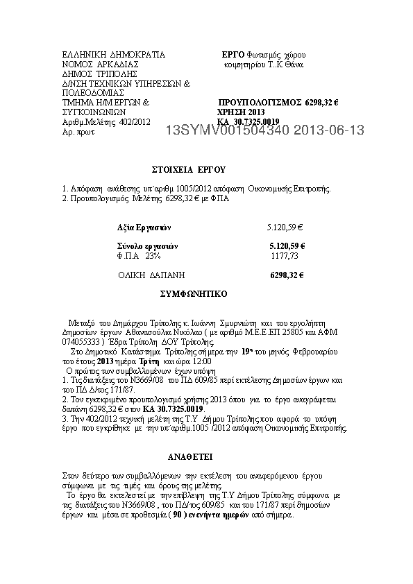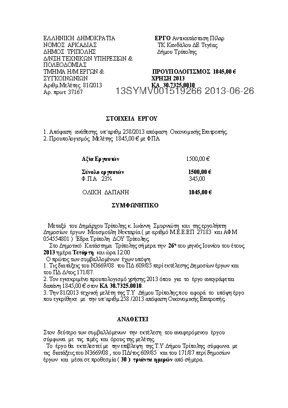 6. Αντικατάσταση Πίλαρ ΤΚ Κανδάλου ΔΕ Τεγέας Δήμου Τρίπολης