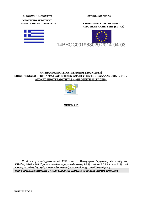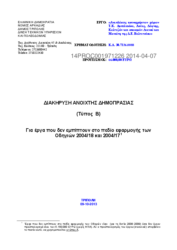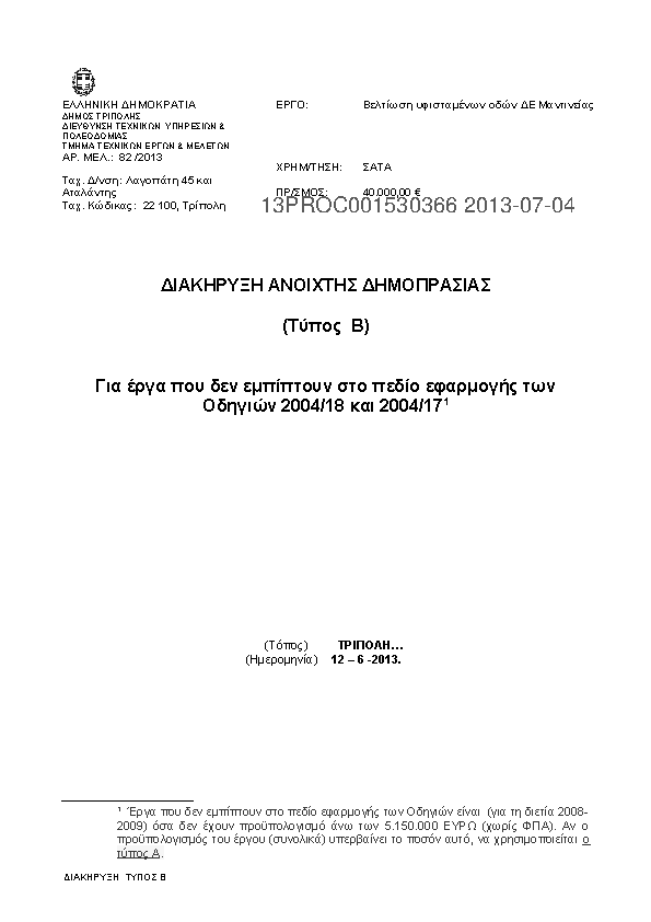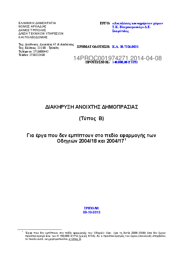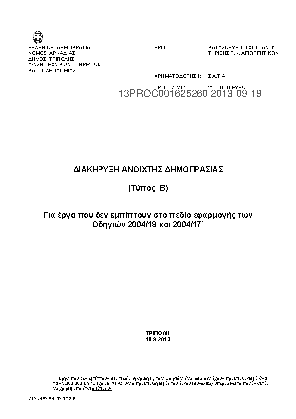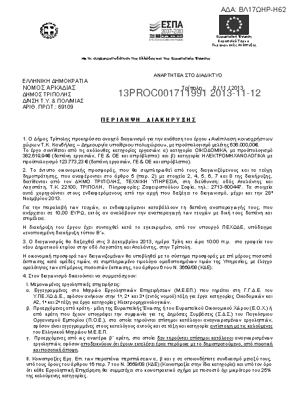 1. ΠΡΟΚΗΡΥΞΗ ΕΡΓΟΥ ΑΝΑΠΛΑΣΗ ΚΟΙΝ/ΣΤΩΝ ΧΩΡΩΝ Τ.Κ. ΚΑΝΔΗΛΑΣ – ΔΗΜΙΟΥΡΓΙΑ ΥΠΑΙΘΡ. ΠΟΛΥΧΩΡΟΥ ΔΗΜΟΥ ΤΡΙΠΟΛΗΣ