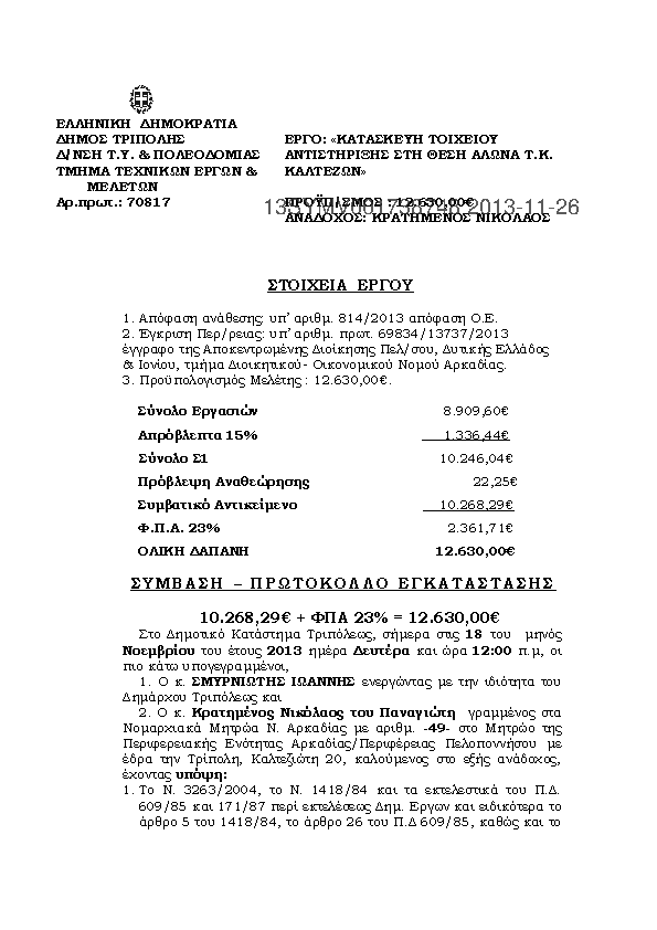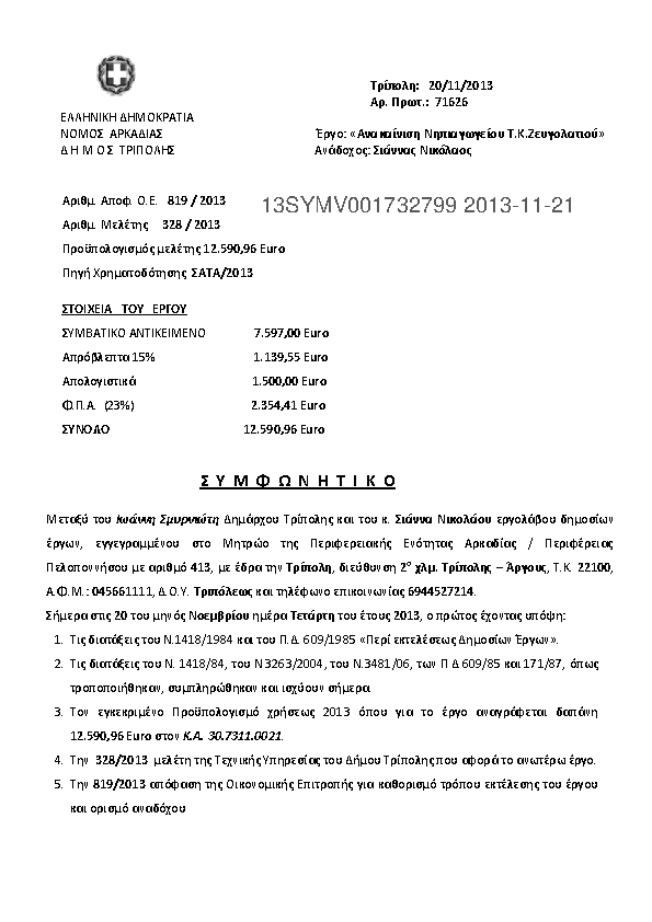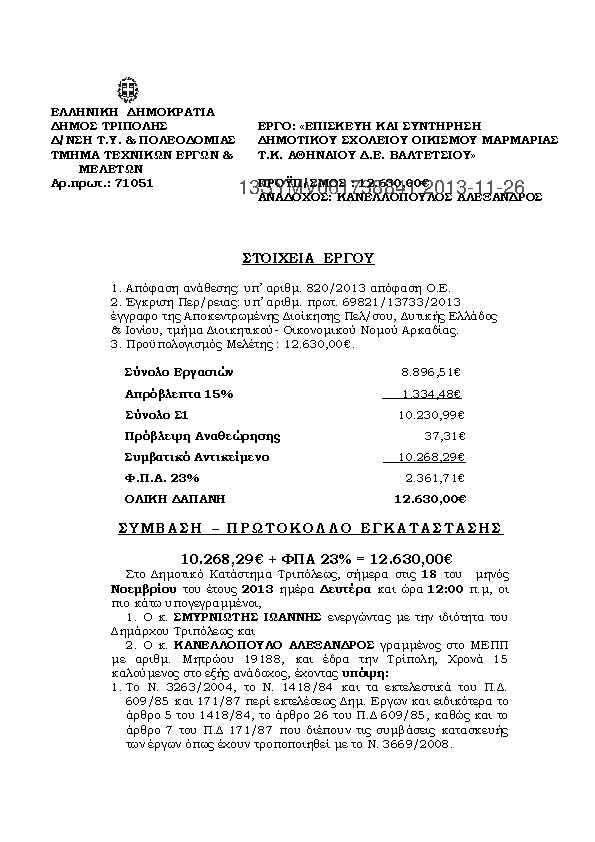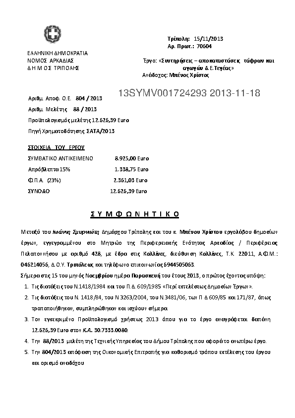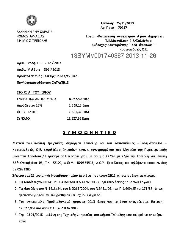 6. Κατασκευή στεγάστρου Αγίου Δημητρίου Τ.Κ.Μαινάλου» Δ.Ε.Φαλάνθου