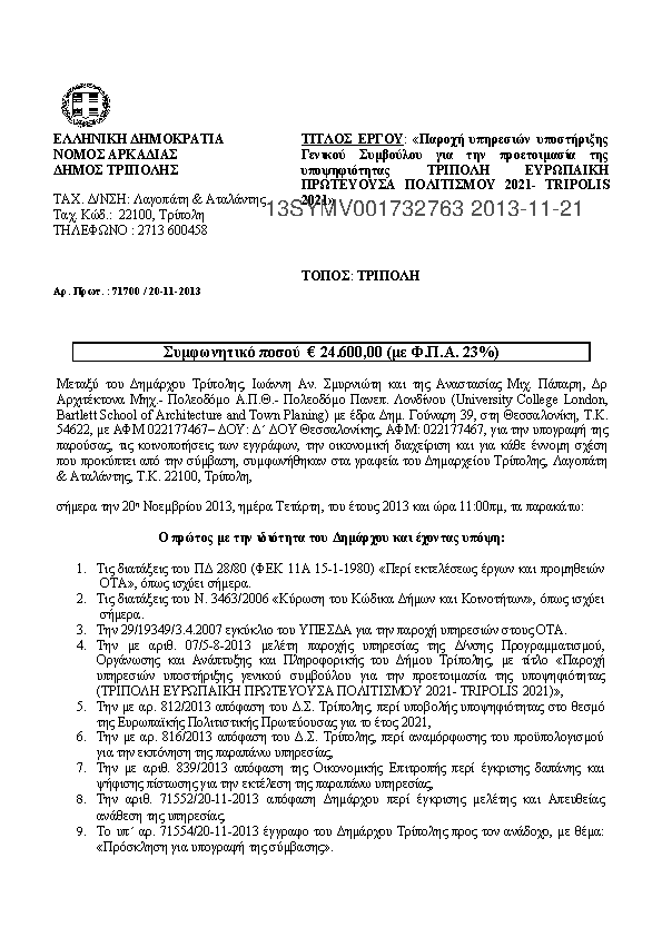 9. Παροχή υπηρεσιών υποστήριξης Γενικού Συμβούλου για προετοιμασία υποψηφιότητας ΤΡΙΠΟΛΗ ΕΠΠ 2021