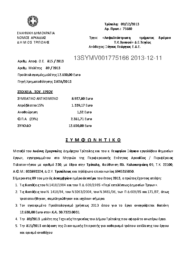 2. Ασφαλτόστρωση τμήματος δρόμου Τ.Κ.Βουνού» Δ.Ε.Τεγέας