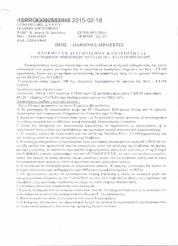 7. ΠΡΟΚΗΡΥΞΗ ΝΕΟΥ ΠΡΟΧΕΙΡΟΥ ΕΠΑΝΑΛΗΠΤΙΚΟΥ ΔΙΑΓΩΝΙΣΜΟΥ ΓΙΑ ΠΡΟΜΗΘΕΙΑ ΠΕΤΡΕΛΑΙΟΥ ΘΕΡΜΑΝΣΗΣ ΤΟΥ ΙΚΑ ΕΤΑΜ ΣΕΡΡΩΝ ΛΟΓΩ ΚΗΡΥΞΗΣ ΑΓΟΝΟΥ ΤΟΥ ΥΠ'ΑΡΙΘΜ 2570/13-2-15-ΑΔΑ:73ΠΨ4691ΩΓ-ΔΟΞ ΔΙΑΓΩΝΙΣΜΟΥ
